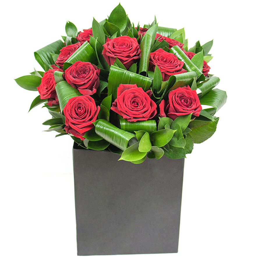 Stunning arrangement with vibrant red roses. Perfect for any occasion.